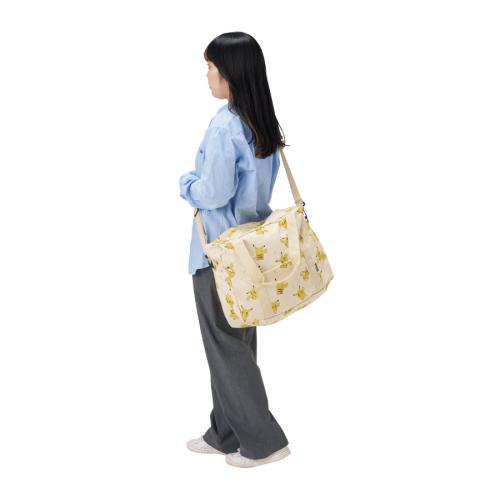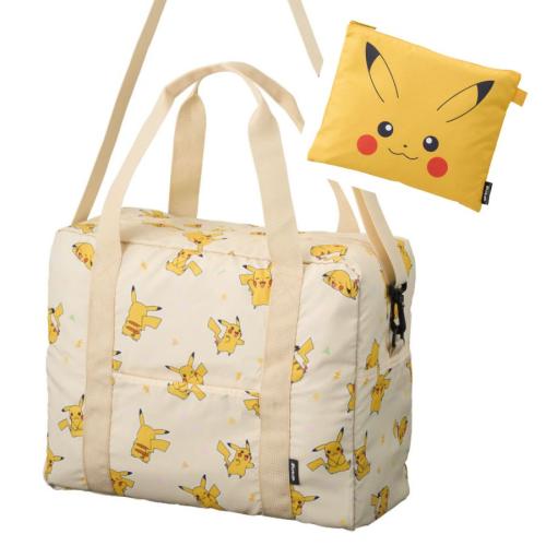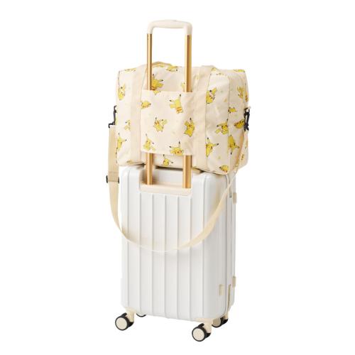 ピカチュウがデザインされたキャリーオンバッグ。折り畳んで付属のポーチに収納できます。スーツケースのバーに通すことができるので増えてしまった荷物もラクに移動できます。取り外し可能なショルダーベルトも付属しているので1泊旅行や荷物の多い日常使いもオススメです。