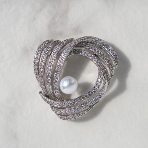 エレガントで華やかなブローチです。贅沢にあしらわれたキュービックジルコニアに美しい1粒パールがアクセントに。セレモニーをはじめ、デイリーにもご利用いただける上品な一品です。