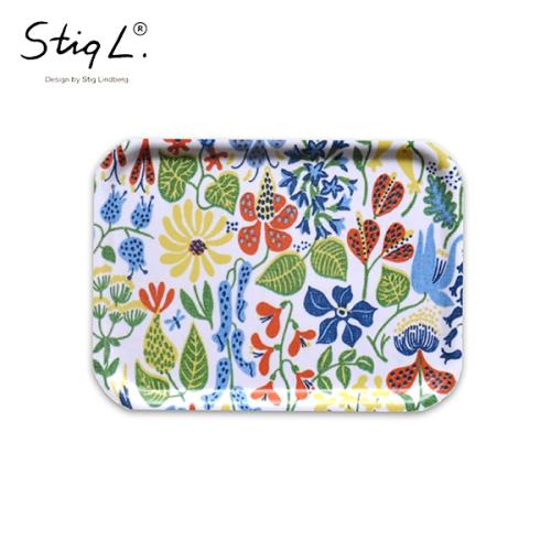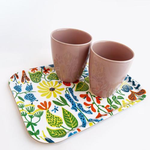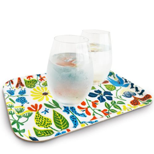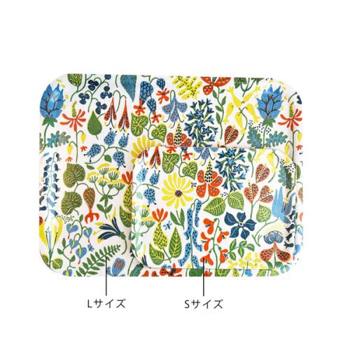 スウェーデンでも最も有名なデザイナー:スティグリンドベリの「Herbarium」デザインが、全面に描かれた木製トレイです。Herbariumとは「植物標本」という意味で、1947年にリンドベリが初めて手掛けたテキスタイルデザインのひとつです。さまざまな植物が色鮮やかで、トレイいっぱいに広がり、遠くから見ても美しく、映えるデザインになっています。落ち着いた上品な雰囲気で、一つあるだけでテーブルを鮮やかに彩ります。。※スウェーデン製。Sサイズは、お茶の時間に1人分のコーヒーとおやつを乗せるのにちょうどいいサイズ。食事を一度にテーブルに運ぶだけではなく、そのままランチョンマット代わりとして使ってもおうちでカフェ気分を味わえます。
