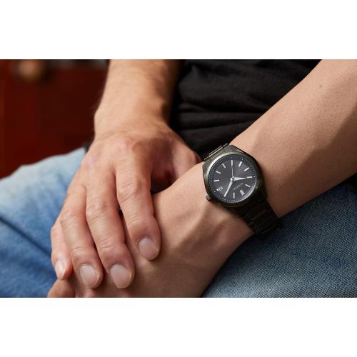 ファーストウオッチにもおすすめのシンプルなデザイン。文字板はオン・オフ問わず、さまざまなシーンで活用できるカラーを採用し、シンプルなバーインデックスと太めの針を配置することで視認性も確保しました。