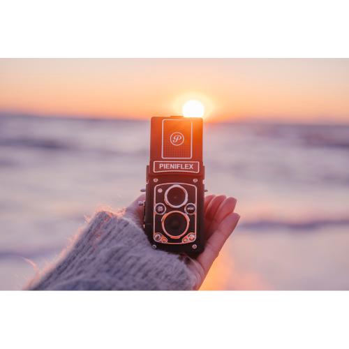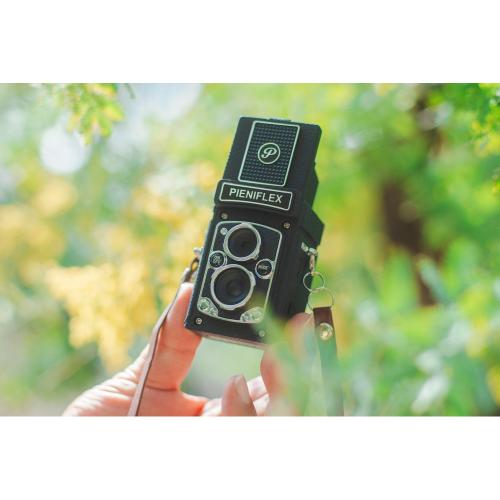 PIENIFLEX M(ピエニフレックス M)は、二眼レフカメラのように上蓋を開けて液晶モニターを上から覗きながら撮影できるトイデジタルカメラです。1:1のスクエアフォーマットで写真と音声付き動画を撮影可能。ネックストラップ付きで、気軽に身につけて二眼レフスタイルの撮影を楽しめます。撮影しない時はインテリアとしてお部屋に飾りたくなるデザインで、ギフトにもおすすめです。