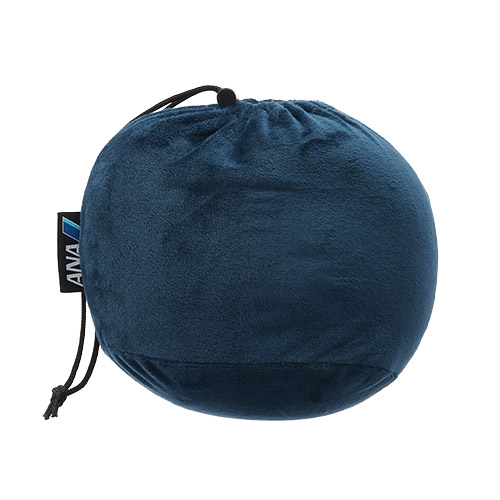 本体と収納袋にANAロゴのピスネームを配した高級感のあるネックピロー。