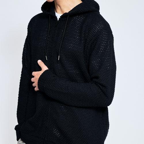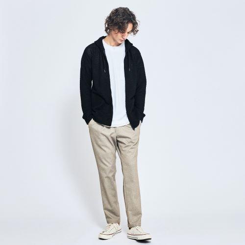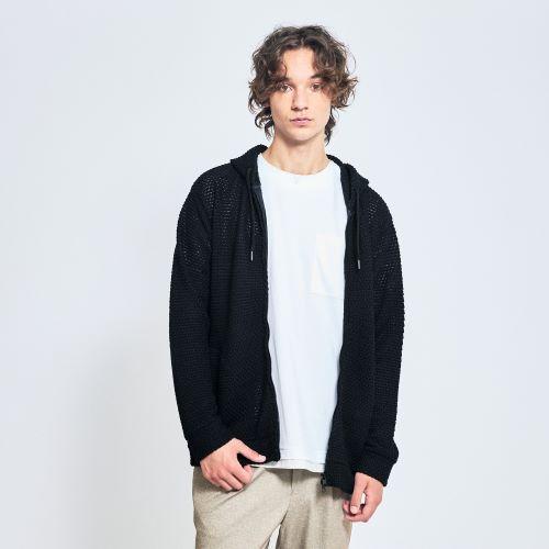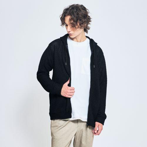 ベーシックですが縫い目や見返しに同色系のテープをポイントに使い、後ろ裾に膨らみを持たせるタックや編み目に負けない様に少しだけ太いフードコードを使用する等、気にならない程度のさりげないデザインは入っています。