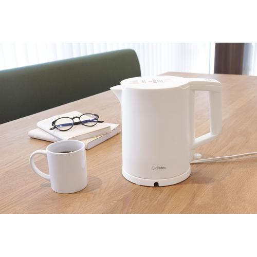 こぼれにくい転倒時湯漏れ防止構造の電気ケトル。フタが取れるので給水やお手入れが簡単です。