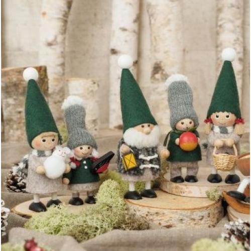 【Nordic Forest】シリーズの男の子。ニッセは動物たちとも仲良しです。森で出会ったウサギと楽しく遊んでいます。『ニッセ』とは、北欧各国にいる妖精の事。普段は屋根裏に住み、皆が寝静まった後、お家の修理や片付けをしてくれる働き者です。ニッセのいるお家には幸福が訪れるとも言われ、北欧の人々はニッセを大切にしています。このニッセたちはクリスマスはサンタさんのお手伝いに大忙し!プレゼントを運んだり、リボンを掛けてラッピングしたり、皆の家にプレゼントを届けたり…クタクタになるまで働きます。クリスマスには、いつも家で見守ってくれているニッセに、お米をミルクで煮てお砂糖とシナモンを掛けたデザートが振舞われます。ニッセは、そのお返しに、また、幸せを運んできてくれるのです。ノルディカニッセは、ヨーロッパの職人が細部にまで一つ一つ丁寧に手作りで作っているので、ハンドメイドならではの温かみを感じさせてくれます。お好きな場所に飾ってお楽しみください。