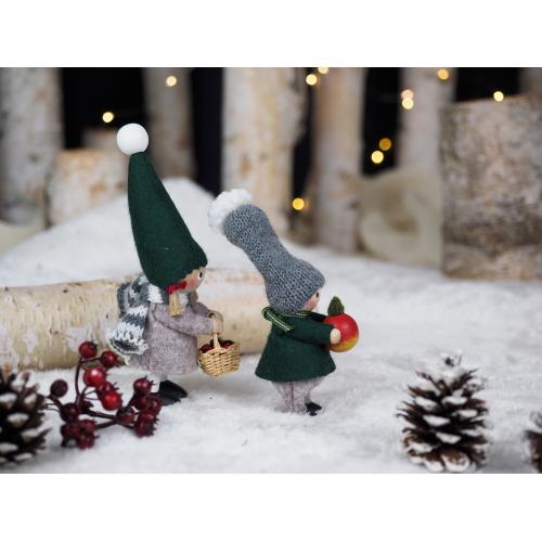 【Nordic Forest】シリーズの男の子。森で見つけた大きなリンゴ!落とさない様に慎重に運びます。『ニッセ』とは、北欧各国にいる妖精の事。普段は屋根裏に住み、皆が寝静まった後、お家の修理や片付けをしてくれる働き者です。ニッセのいるお家には幸福が訪れるとも言われ、北欧の人々はニッセを大切にしています。このニッセたちはクリスマスはサンタさんのお手伝いに大忙し!プレゼントを運んだり、リボンを掛けてラッピングしたり、皆の家にプレゼントを届けたり…クタクタになるまで働きます。クリスマスには、いつも家で見守ってくれているニッセに、お米をミルクで煮てお砂糖とシナモンを掛けたデザートが振舞われます。ニッセは、そのお返しに、また、幸せを運んできてくれるのです。ノルディカニッセは、ヨーロッパの職人が細部にまで一つ一つ丁寧に手作りで作っているので、ハンドメイドならではの温かみを感じさせてくれます。お好きな場所に飾ってお楽しみください。