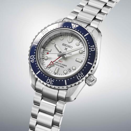 <セイコー>プロスペックス 自動巻 1968メカニカルダイバーズ SBEJ029<セイコー プロスペックス>ブルーとホワイトシルバーのコンビネーションが爽やかなプレミアムスポーツウオッチが登場◆ポイント・マリンスポーツのあるライフスタイルをイメージした爽やかなプレミアムスポーツウオッチ。ブルーセラミックスとホワイトシルバーダイヤルは、爽やかでクリーンな雰囲気を演出します。・1968年に発売されたモデルのデザインを基に、時差のある2つのタイムゾーンの時刻を表示できるGMT機能を備えた「キャリバー6R54」を搭載した「ダイバーズ 1968 ヘリテージ GMT」が300メートル空気潜水用防水へ進化。・最大約15oの調整幅があり、約2.5oずつ、6段階で調整を行うことができる新開発の中留をレギュラーモデルで初採用。ムーブメント:キャリバー 6R54駆動方式:メカニカル 自動巻(手巻つき)時間精度:日差+25秒〜−15秒駆動期間:最大巻上時約72時間持続