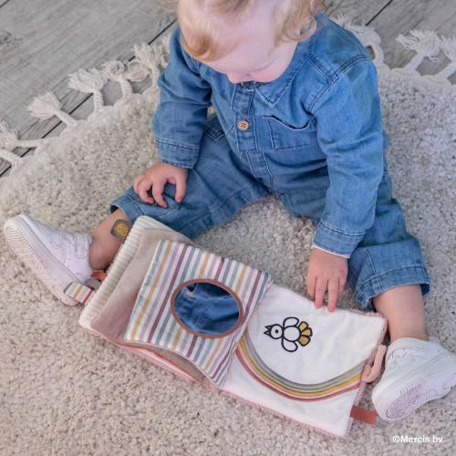 やわらか素材のしかけがついた布えほん。ミラー、カシャカシャ音、かくれんぼ。。ページをめくるごとに楽しいしかけや新しい発見がいっぱい。イラストだけの絵本で、いろいろなストーリーをつくりながら遊びましょう。ミッフィーが生まれたオランダでデザインされた、赤ちゃんのためのミッフィー。