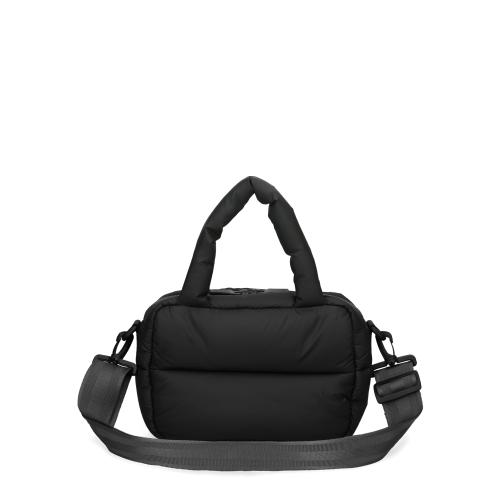 耐水性リサイクルナイロンを使用しており、スノーブーツと合わせたスタイリングもお楽しみいただけます。メインコンパートメントは500mlのペットボトルも収納可能。付属のショルダーストラップを付ければ、ショルダーバッグとしてもお使いいただけます。