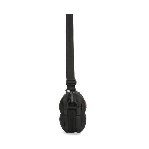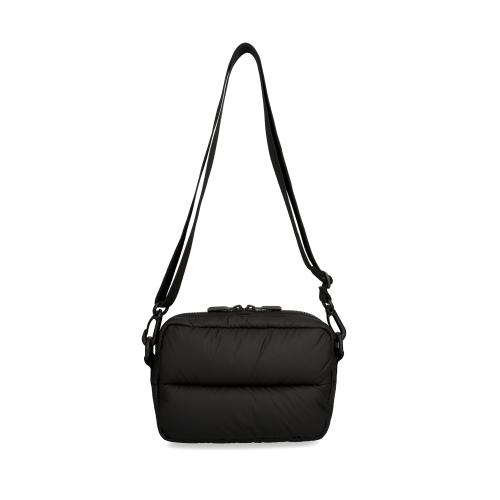 耐水性リサイクルナイロンを使用しており、スノーブーツと合わせたスタイリングもお楽しみいただけます。メインコンパートメントはスマートフォンやお財布を十分に収納できるサイズで、小物収納に便利なミニポケットがついています。
