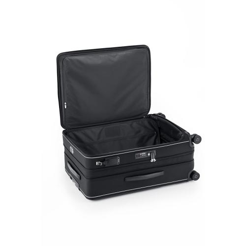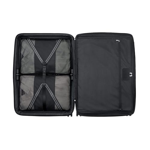 メインコンパートメントには中央、及びフロントからもアクセス可能ですので、狭い空間でも荷物の出し入れが可能です。内装には、ファスナーで開閉できるディバイダーを備え、荷物を2つのスペースに分けて整理することが可能。ディバイダーは不要なときは丸めてスナップボタンで留めておくことができるため、ひと続きの広い収納スペースとしてもお使いいただけます。本体一体型のTSAロックを装備。マグネットを内蔵したディテールにより、プラー(ファスナーの引手)とラゲージタグは所定の位置にぴたりと収まります。さらに、レバーロックによる拡張機能も装備していますので、荷物が増えた際にも柔軟に対応できます。高級車の洗練されたデザインからインスパイアされたArrive(アリーヴェ)コレクションは、カーボンファイバーやクロームのディテール、マグネット式ジッパーガレージなど細部に至るまで洗練された佇まいを感じさせるプレミアムコレクション。刷新された『T』ロゴデザイン、ダークカラーのライニングなど、 プレミアムコレクションとしての存在感を高めるためのユニークなパーツを採用しています。*ハンガーは付属していません。*製品の仕様は予告なく変更する場合があります。外装中央とフロントのファスナーで開閉するメインコンパートメント(フロントパネルのファスナーからの内側へのアクセスやパッキングが可能)格納できるレザー製トップハンドルとサイドのキャリーハンドル3段階に調節可能なハンドルデュアル スピニング ホイール(4輪)ボトムのグラブハンドルレバーロックによる拡張機能(2段階)背面の保護バンパー右側側面の底鋲(フィート) x 4本体一体型TSAロックマグネット内蔵のラゲージタグ内装前後のメインコンパートメントを仕切ることができるファスナー・ディバイダ―(ディバイダ―として使用しない時は、丸めてスナップボタンで留められますので、収納スペースを広くできます。)マグネット仕様のタイダウンストラップハンガー用フック x 2ディバイダーのファスナーポケットフロントパネル裏側のファスナーポケット