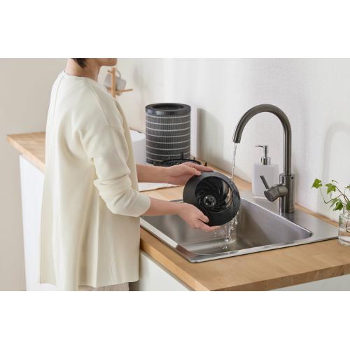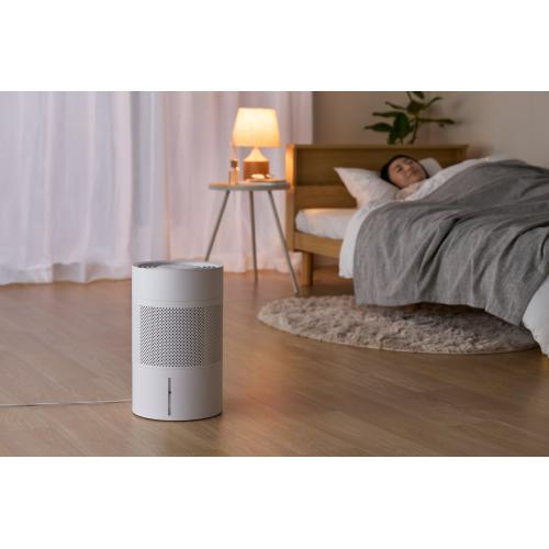 気化式タイプなので安全性も高く、省エネでリビングにもピッタリな加湿器です。羽まで清潔にできる丸洗い構造!全分解する事が可能なので、お手入れ簡単で、清潔を保てます。本体天面はタッチパネルになっており各モードの設定が可能です。湿度モニターも搭載し、湿度を可視化する事が可能です。使用シーンに合わせて様々な運転モードに切り替え可能です。自動ボタンで3段階(おまかせ・うるおい・おやすみ)の運転モード切り替えることができ、連続ボタンでは、静音・中・強の切り替えができます。便利な上から給水タイプ仕様で、送風口から直接タンクに水を注ぐことができます。切タイマー付で、1〜9時間(1時間毎)と設定できます。