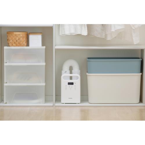 立体ノズル(サイドフラップ付き)で、ふとんの中に空間をつくり、より遠くまで温風を届けます。コンパクトサイズでもパワフル温風のふとん乾燥機です。ダブルサイズのふとんに対応します。4つの自動モード(あたため・ふゆ・なつ・ダニ)と時間と温度をお好みに合わせられる手動モード搭載で1年中大活躍。付属のくつ乾燥アタッチメントでくつの乾燥にもご使用いただけます。軽くて小さいので準備も移動もラクラク、収納も省スペースです。