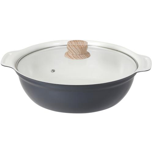 <LIV PLUS>ビストロ・セラミックIH卓上鍋 28cm ガラス蓋付