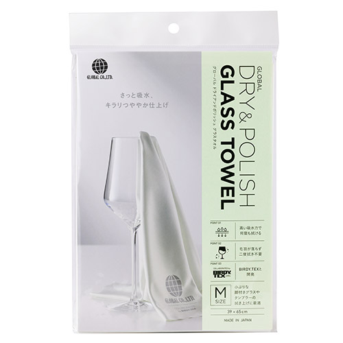 一度の拭き上げで、さっと吸水、グラスつややか、高機能グラスタオル。■高い吸水力一般的なマイクロファイバークロスに比べて吸水力は約3倍(30秒時点)。※繊維の隙間に水分をたっぷりと溜めておくことができる素材だから、濡れても吸水性が長持ち。一度で快適に数多くのグラス拭きが可能です。※JIS L 1907表面吸水法(カケンテストセンターでの試験結果)■毛羽が落ちず、二度拭き不要BIRDY.TEXが開発した新素材「Birdy シルキーストレッチファイバー」は超極細マイクロファイバーにポリエステルを最適配合。伸縮性のあるしなやかな風合いで滑らかにグラスを拭くことができ、毛羽も落ちず、二度拭きが不要です。一度でキラリとしたツヤが生まれます。■耐久性厳密な品質テストの結果、40回の洗濯でも吸水性の変化が見られたのは、わずかにマイナス3%。 毛羽の付着も見られず、耐久性に優れ、長くご愛用いただけます。※JIS L 1907表面吸水法(カケンテストセンターでの試験結果)