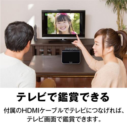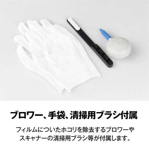■ フィルムを直接差し込んでスキャンホルダーを取り出す必要がなく、横からスルスル差し込むだけ。効率的に連続スキャンが可能です。■ 大型液晶モニターで鮮明に再現テレビにも使われるIPSディスプレイを採用。5インチの大型液晶でネガを自動反転し、鮮やかなカラーで表示。■ 幅広いフィルムに対応付属アタッチメントで35mm、126、110フィルムに対応。カラーネガ・リバーサル・白黒ネガフィルムをスキャンできます。■ デジタルフォトフレームとしても利用可能保存した画像をSDHCカードから再生し、大型モニターでフォトフレームとして楽しめます。■ パソコン不要のダイレクト保存スキャンデータを簡単操作でSDHCカード(別売)に直接保存可能。※カード初期化にはPC使用が必要な場合があります。■ テレビで大画面鑑賞HDMIケーブルで接続すれば、思い出の写真をテレビ画面で共有して楽しめます。■ 便利な付属品セットブロワー、手袋、清掃用ブラシが付属。フィルムやスキャナーを清潔に保ちながら安心して使用できます。■ 写真や思い出を鮮やかに保存大切なフィルムを手軽にデジタル化し、鑑賞・保存・共有をスムーズに行えます。