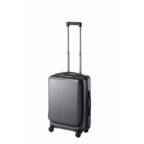 プロテカ初のフロントオープンタイプシリーズ。ボディシェルを取り囲むラインは、日本刀に施された『溝=樋(ひ)』から想起されており、金属感のあるテクスチャーも相乗してシャープな印象に仕上げました。●内装スペースを有効活用できるフロントオープン仕様。(通常スーツケースの様な中央開きは出来ません)●2〜3日の旅行向け。国際線、国内線100席以上の航空機に対応。(マチ幅 未拡張時)●荷物の量にあわせてマチの拡張が可能なエキスバンダブル機能を搭載。●手元のスイッチで簡単に操作でき、不意な走行を防ぐキャスターストッパー機能を搭載。●ホイール部には滑らかな走行を可能にする、ベアリング内蔵のベアロンホイールを搭載。●公的機関の検査に基づき、従来品に比べ約30%の体感音量軽減が証明された、自社開発のサイレントキャスター。●TSダイヤルファスナーロック(Travel Sentry®認可ロック)搭載で、施錠したまま預け入れ可能。※鍵の付属はしません。