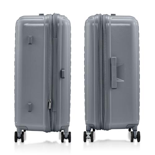やさしいシャーベットカラーと小花が舞うような立体模様が印象的なパクストラ、スーツケースもファッションの一部として楽しみたい方に向けたシリーズです。コーディネートの一部としても映えるカラー展開が魅力です。内装ははメインと前面収納に分かれた20:80構造で、衣類や小物を分けて収納しやすく、取り出しもスムーズです。セキュリティ面では、こじ開けに強い二重構造のセキュリティジッパーと、鍵不要で空港検査にも対応するTSAロックを採用。安心して荷物を預けられます。移動中にスーツケースが転がるのを防ぐストッパーホイールを搭載。足元のボタンを軽く踏むだけでキャスターをロックでき、電車内や坂道でも安定して立てられます。内装はブックオープン型で、仕切りパネルとクロスストラップを備え、荷崩れを防ぎながらすっきりとパッキング可能。コンパクトながら収納力もあり、使い勝手の良さが魅力的。見た目の美しさと使いやすさを両立したスーツケースです。