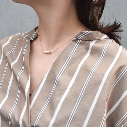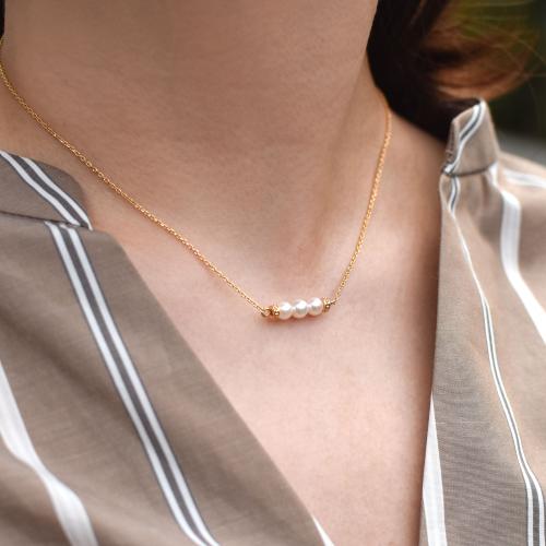 何気ない日常をきらめきでいっぱいにするトレゾアシリーズにアコヤパールが登場。3つのアコヤパールをバーにしたデザインはシンプルでありながら上品なきらめき。さりげなく品格をアップするネックレスです。
