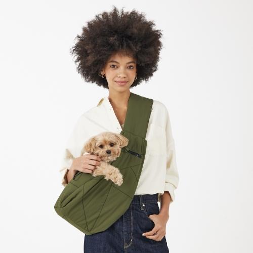 【Design】大人気モデル【有末麻祐子さん】ディレクションの定番アイテム飼い主様にとっても愛犬にとっても"使い心地が良いバッグ”をテーマに開発。このスリングバッグがある事で一緒に入れるお店が増え、行動範囲が広がったり、愛犬が疲れた時に落ち着く簡易的なベッドになったりできるよう、様々な機能性にこだわりました。愛犬がいる方はもちろん、スタイリッシュに普段使いのバッグとしても活躍する最旬のショルダーバッグです。【Detail】<おすすめポイント>@軽量で持ち運び楽々移動A薄綿クッション入りで安心・やわらかな素材感Bジェンダーレスなカラー、素材で男女兼用で使用できるデザインC汚れても大丈夫!洗濯可能素材〇D豊富なポケット数E愛犬の安全と飼い主さんの配慮を考え飛び出し防止、リード紐付きF低反発芯入りの底板は取り外し可能G通気性のあるメッシュの口元+しっかり閉じれる巾着の開け口仕様Hゴム紐入りで、本体のシルエットが微調整できるのも嬉しい!