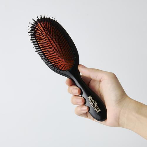 標準的な硬さの猪毛を100%使った、初めて猪毛のヘアブラシを使う方にもふさわしい1本。ラインナップの中で最も標準的なサイズで、髪の長さ問わず使いやすいモデルです。メイソンピアソンのヘアブラシは、高品質な猪毛と、独自に設計されたクッションパッドを使用し、熟練の職人が手作業で作り上げています。高い耐久性と、使うほど髪にブラシの毛が馴染んでいくことも特徴。“一生モノ“として一人一人の髪に寄り添います。