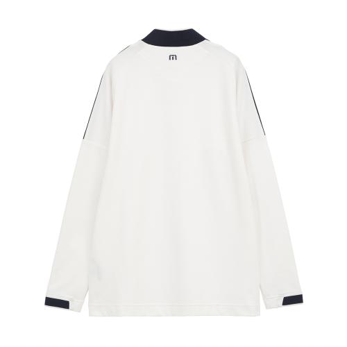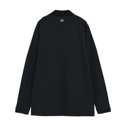 特殊な仮撚加工により独特な膨らみのあるソフトな素材(DELTA)の長袖モックネックシャツ。裏面の凸部分に特殊撥水ポリエステル糸(CARAT)を使用し肌離れのいい快適な着心地を実現。夏はさらっとして涼しく、冬は冷え感なく温かいのが特徴。