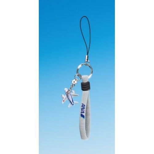 ANA飛行機マスコットが付いたストラップです。鍵をつけたりお気に入りのストラップをつけたりと活用いただけます!
