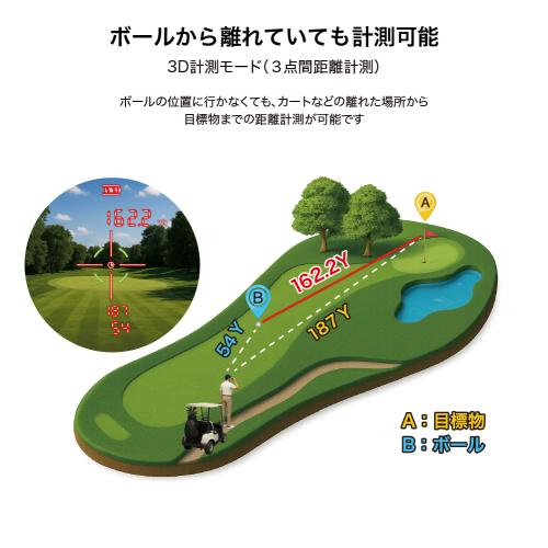 ボールの位置に行かなくても、ボールからピンフラッグまでの距離計測ができます。