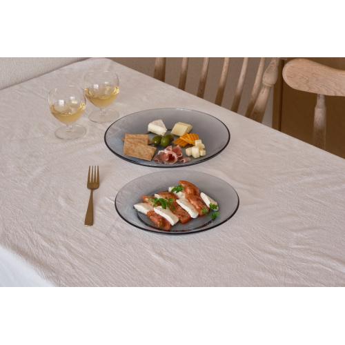 電子レンジ、オーブンに対応の耐熱カラーガラス製のプレートペアセット。サラダをのせたり、取り分け皿として使うのはもちろん、パスタやスープなどお皿に乗せてそのまま温め直しができます。シックなカラーは、食卓を特別なひとときに包んでくれます。