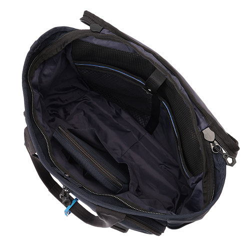 正面内装のメッシュポケットは航空機ネットをイメージ