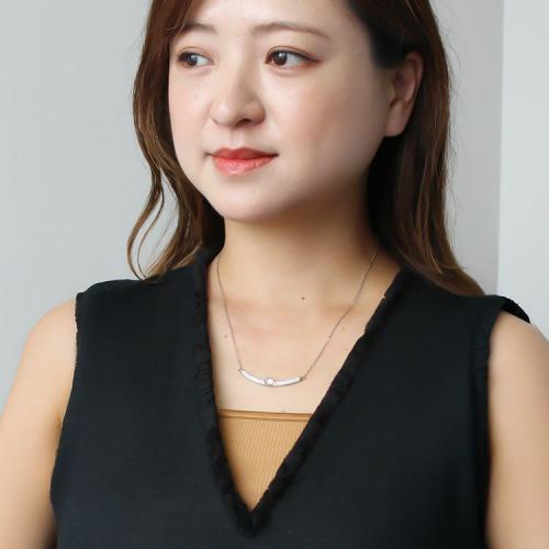 メタルバーにビジューとチェコクリスタルが煌めくペンダントネックレス。大人っぽいデザインはこなれ感を演出しています。デイリーはもちろん、セレモニーやオケージョン、オフィス使いにもご使用いただけます。 留め具はマグネット式のため着脱がスムーズ。セットになるイヤリングも販売しています。