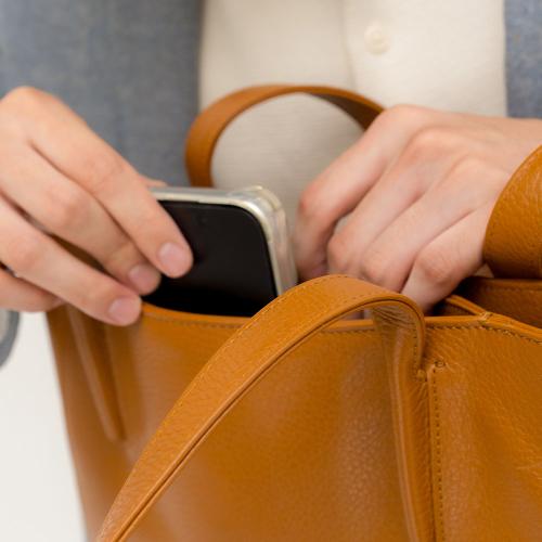 シボ型押しの牛革を贅沢に使用した上品なトートバッグ。撥水剤を革の内部まで浸透させたウォータープルーフレザーを採用し、雨の日でも安心して使えます。前面には財布やパスケースなどをすぐに取り出せるポケット、内側にはファスナーポケットを備え、使い勝手も抜群。A4サイズの書類が横にすっぽり収まるサイズ感で、通勤やお出かけにも最適です。
