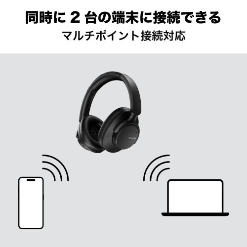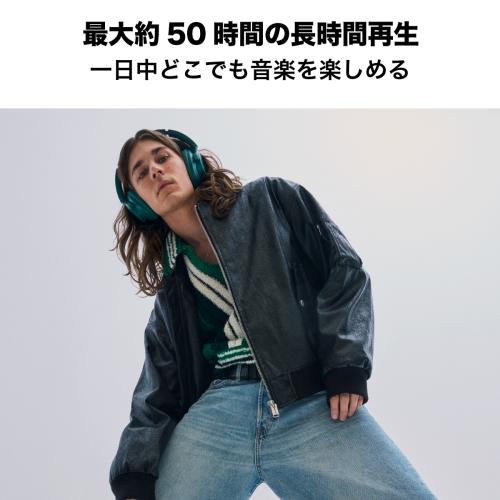 ・最大約50時間のワイヤレス再生可能・最大25dB低減のアクティブノイズキャンセリング・Bluetooth マルチポイント接続でシームレスな接続・切り替えが可能・本体重量250g以下の軽量設計・折りたたみ可能なデザインで、コンパクトに収納・3.5mm AUX端子付AUX端子付で音楽プレーヤーやスマホなどの音源とつないでアナログでの再生も可能