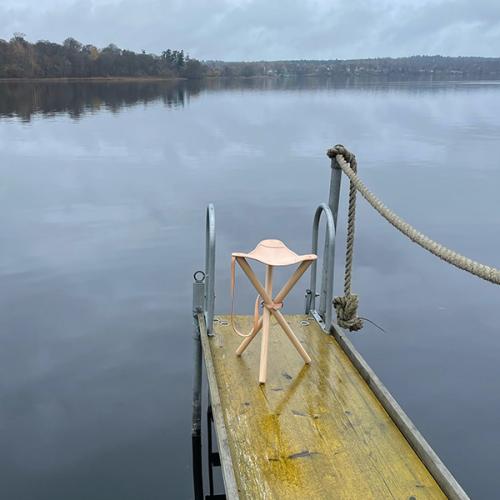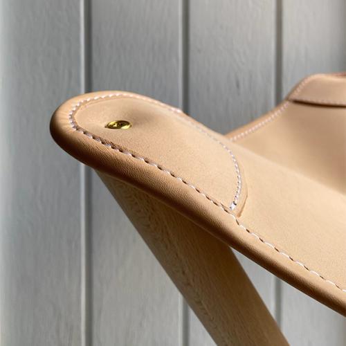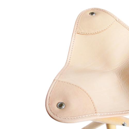 デンマークで狩猟用のハンティング・チェアとしてだけではなく、釣りやピクニックなどのアウトドア全般で活躍していた椅子です。いろいろな用途でお使いいただけるので、玄関、キッチン、寝室などで、必要な時に取り出して座ることが出来、1つあるととても便利です。3本の脚で作られているデザインですが、腰掛けると、レザーがお尻を包み込むので、安定感が生まれます。本体の重量はわずか1.1kgと軽いので、畳んで簡単に持ち運びできます。また壁に吊るしたり、コートハンガーに掛けたりも出来ます。レザーが経年変化していく過程もお楽しみください。
