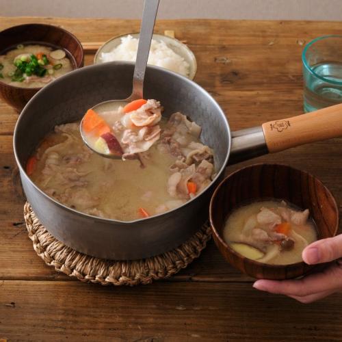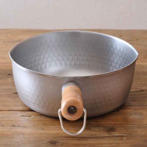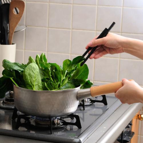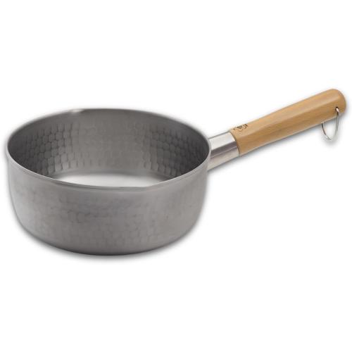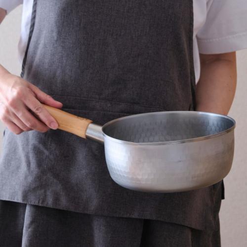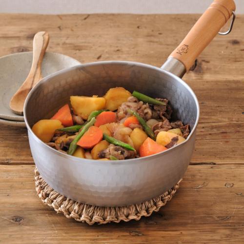 チタン配合により耐食性を高めたステンレス材を使用しています。外面の凹凸加工は独特な風合いで傷がめだちにくくなっています。径20cmと日々の使い勝手にちょうどいいサイズ。みそ汁や煮物、野菜の下茹でから、インスタント麺まで使い所を選ばず、一人暮らしの万能鍋にも。取っ手、つまみは暖かみのある天然木を使用。手になじむかたちで握りやすいようにデザインされています。しっかりと深さがあり、容量2.5Lとたっぷり入るので、夕飯の下ごしらえにも最適。IH、ガス火の両方に対応しています。ガスコンロ、IH100V,200V、エンクロヒーター、ハロゲンヒーター、ラジエントヒーター、シーズヒーターと多彩な熱源に対応。