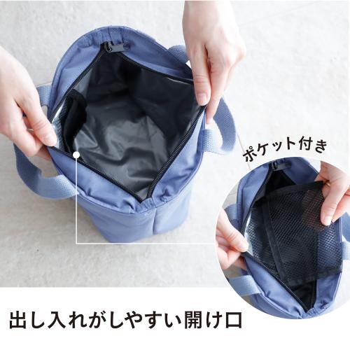 ・一人分のお弁当と水筒がちょうど入る、コンパクトなサイズ。・内側はEVA生地でしっかり保冷。保冷剤を入れるポケットも付いています。・しっかり保冷の4層レイヤーで暑い季節でも安心。