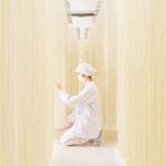 「稲庭うどんは上手な寝かせ方で品質が変わる」と言われるほど、麺の寝かせ方は重要です。季節 、気温、湿度、天気などによって熟成に差が生じます。季節ごとの温度、湿度を味の味方にし、真っ直ぐで、白く美しいうどんに仕上げています。