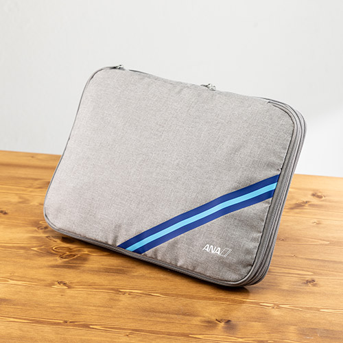 CAの制服をイメージしたオリジナル圧縮ポーチ、Mサイズです。象徴的なグレーカラーとブルーのラインが鮮やかなデザイン。衣類などを入れてファスナーを閉めるだけで簡単に圧縮します。衣類、タオルなどかさばる旅行の荷物を簡単にコンパクトにできる優れもの。旅行に持って行く荷物をコンパクトにできるのでパッキングの際の強い味方になります。Tシャツがおよそ10枚収納可能です!※収納アイテムにより異なりますのであくまでも目安として参考にしてください。※素材は実際の制服に使用されている素材ではありません。Lサイズはこちら>MLセットはこちら>