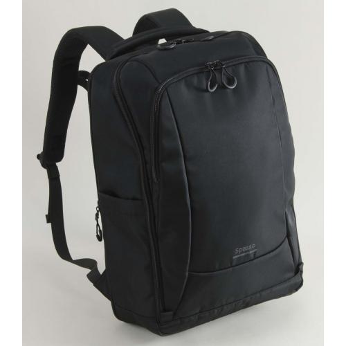 リュック本体にはクッション材の入ったPCポケット付き、対面側にはメッシュポケット付き。側面のEXファスナーにより、マチ幅が5cm広がり収納力が拡大。本体背面のループと上部ハンドルでキャリーハンドルに通しセットアップが可能。