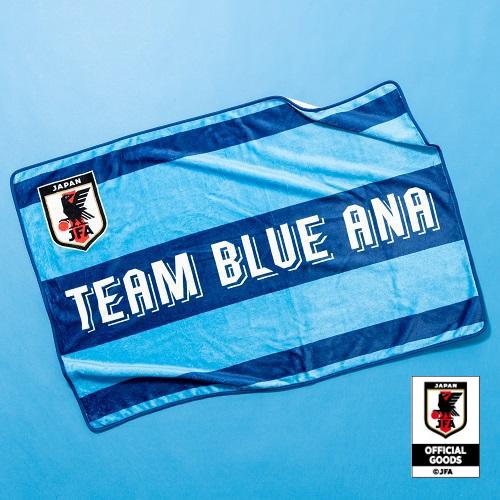 サッカー日本代表のエンブレムと両社のコーポレートカラー・チームカラーである「ブルー」を活かしたデザインのブランケット。ANAは「TEAM BLUE〜世界に羽ばたく翼になる〜」というテーマを掲げサッカーにかかわる様々な取り組みの実現を目指します。厚手過ぎない素材で、1枚持っていると観戦には大変便利です。ブランケットを羽織って応援しましょう!飛行機に搭乗の際にも1枚あると便利です。応援、日常使いに、是非手に取ってみてはいかがでしょうか。