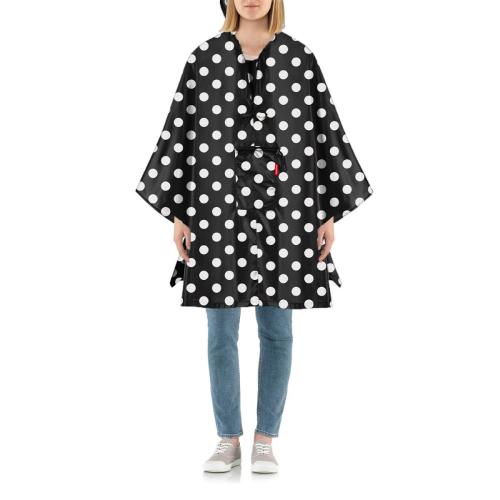 襟元は広く着脱しやすいです。ファスナーで広がりを調節できるので、雨が入らず服が濡れるのを防ぎます。裾の側面にはスリットが入っているので、自転車も乗りやすいです。袖先にはスナップボタンが付いており、風が吹いても広がらず邪魔になりません。正面にはポケットが一つ付いていて、こちらのポケットに折り込んでいくとコンパクトに畳むことができます。使用しない時はバッグに入れて持ち運べるので急な雨にも対応できます。