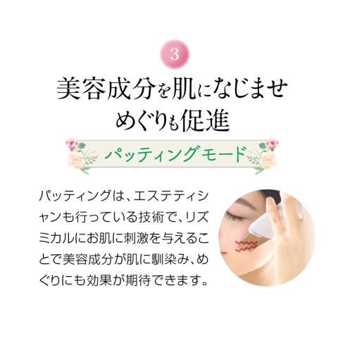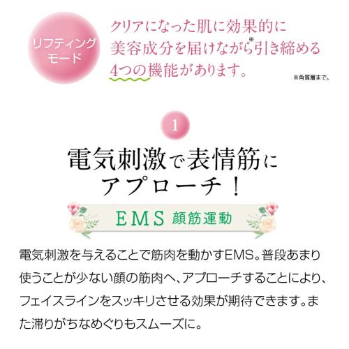 化粧水や美容液の美容成分を導入しながら、キュッと肌を引き締めるモードです。(※角質層まで)