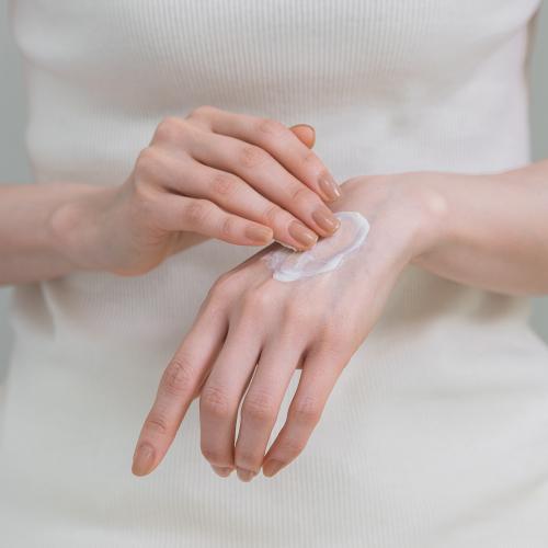 適量を手の甲に取り、十分になじむまでマッサージしながらのばします。