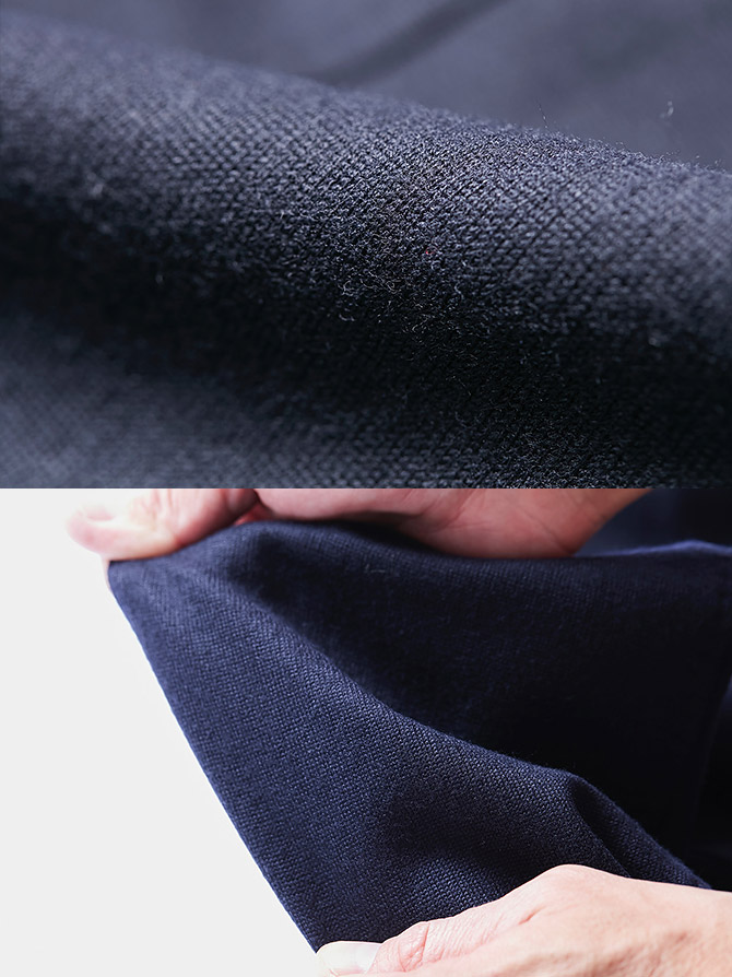おすすめは、ネイビー無地で、ストレッチが効いた素材のもの。写真のポール・スチュアートのものは、スポーツアイテムにあるようなジャージ素材のものなので、動きやすく、とても着心地が良いのが特徴です。シャツやネクタイに合わせてもいいですし、先ほどからご説明しているニットに合わせても似合います。